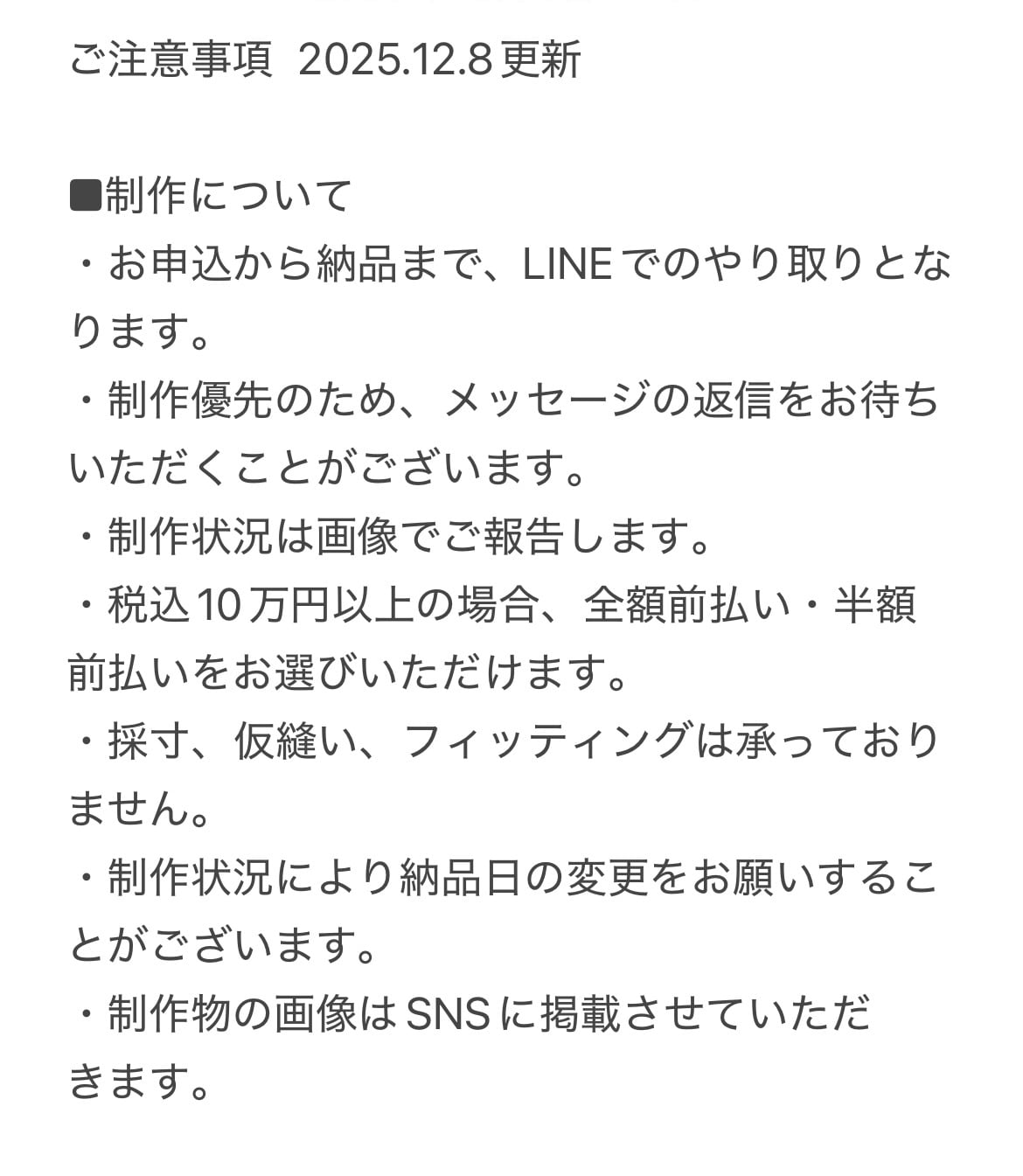 現在オーダー受付中です✨️最短納期は2026年3月末です。※募集納期より早い納品をご希望の場合はご相談ください。下記6点をお送りください🎀■お名前、所属グループ■ご希望納期(3月末のみ)■着数■ご予算(税込7万円~)■ご希望のデザイン、イメージ■アクセサリー類の有無、種類